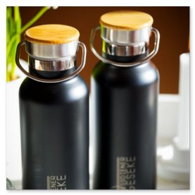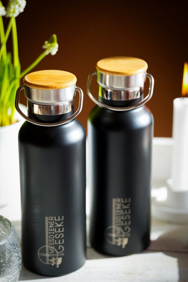 - Präzise Lasergravur auf Thermoflaschen und Thermobechern
